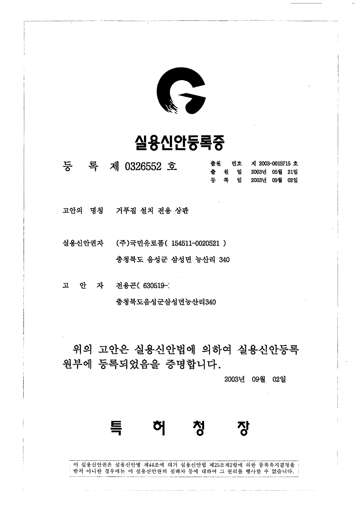 실용신안등록증(국민유로폼)거푸집설치전용상판 2003